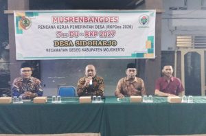 Kegiatan Musrenbang Desa dalam rangka penetapan skala prioritas RKP Desa Tahun 2026 dan DU-RKP 2027 yang dihadiri oleh Forkopimca Gedeg, Pemerintah Desa Sidoharjo, BPD, PLD Desa Sidoharjo, lembaga desa, tokoh masyarakat, Pendamping Desa, Babinsa, Babinkamtibmas dan unsur perwakilan perempuan serta Tim dari Kecamatan (18/09).